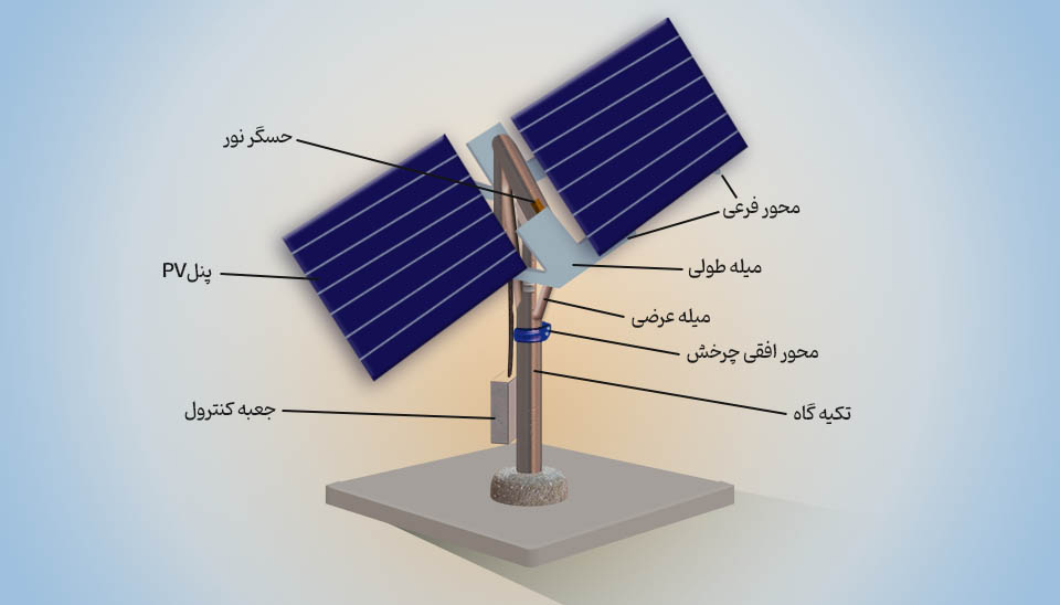 شکل ۵- سیستم ردیابی خورشیدی دو محوره برای به حداکثر رساندن تولید انرژی.